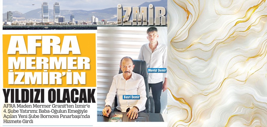 Afyon, Bursa ve İstanbul’dan sonra, sektörün öncüsü AFRA Maden Mermer Granit, şimdi de İzmir’e değer katıyor. 28 yıllık bilgi birikimi ve tecrübenin eseri olan firmanın 4. şubesi, Bornova Pınarbaşı’nda kapılarını açtı. Ancak bu açılış, sadece ticari bir adım değil; bir babanın oğluna duyduğu güvenin, emeğin ve aile bağlarının simgesi olarak öne çıkıyor.