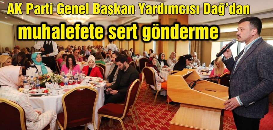 AK Parti Genel Başkan Yardımcısı Hamza Dağ, konuşmasını şu şekilde sürdürdü, ‘’ ‘Bu millet bizi anlamıyor’ demiyoruz, ‘bu millet bizi bilmiyor, bilemiyor.’ demiyoruz veya millete hakaret etmiyoruz. Birilerinin 14 Mayıs’ta çıkan neticeden sonra depremzedelere başlayarak millete hakaret ettikleri gibi bizim öyle bir gündemimiz olmadı olamaz. Kadınlar üzerinden bir propaganda yapma gayretleri vardı, biz onlara karşı hiçbir laf söylemiyoruz. Sadece İzmir’deki 2 milletvekilimizi gösteriyoruz diyoruz ki; ayinesi iştir kişinin lafa bakılmaz, siz kadınlar üzerinden bize bir şey söylemeyi bırakın. CHP’liler kendilerine bu konuda ne kadar temsiliyet verdiler nasıl bu noktada adım attılar ona baksınlar. AK Parti kadın hareketidir. Recep Tayyip Erdoğan, kadınlara her zamankinden daha fazla imkan vermeye gayret etmiştir.”