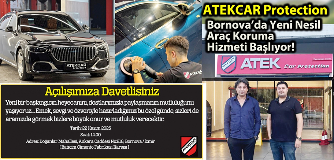 Bornova’da araç bakımına kalite, güven ve profesyonellik kazandıracak yepyeni bir marka yola çıkıyor! ATEK Car Protection, Ankara Caddesi üzerinde yer alan 750 metrekarelik modern iş merkezi ile İzmirli araç sahiplerine, İzmir’de bir ilk olacak düzeyde kapsamlı ve profesyonel bir hizmet deneyimi sunmaya hazırlanıyor.