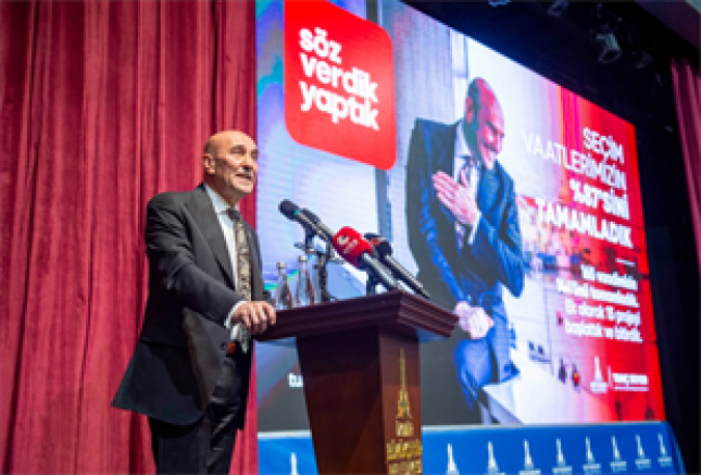 “Beni bu makama taşıyan ve yüzde 58’lik bir oyla seçilmemi sağlayan seçim beyannamemde 165 proje vaat etmişim. Bu kitapta bu projelerin akıbetini tek tek okuyabilirsiniz. Seçim vaatlerini bu kadar şeffaf bir şekilde masaya yatıran ikinci bir belediye başkanı yok. Bu kitapçıkta paralı trollerin ve bazı hizipçilerin yarattığı algılar yok. Burada sadece olgular ve gerçekler var. 165 vaadim olmuş, 144’ünü tamamlamışız. 14’ünü kısmen tamamlamışız. Yedisini de büyük oranda hükümetin taş koyması nedeniyle yapamamışız. Buna karşılık 15 ilave projeye başlamışız ve tamamlamışız.”