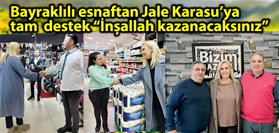 Cumhuriyet Halk Partisi Bayraklı Belediye Başkan Aday Adayı Gazeteci Jale Gönüslü Karasu’ya esnaf ziyaretinde tam destek geldi.