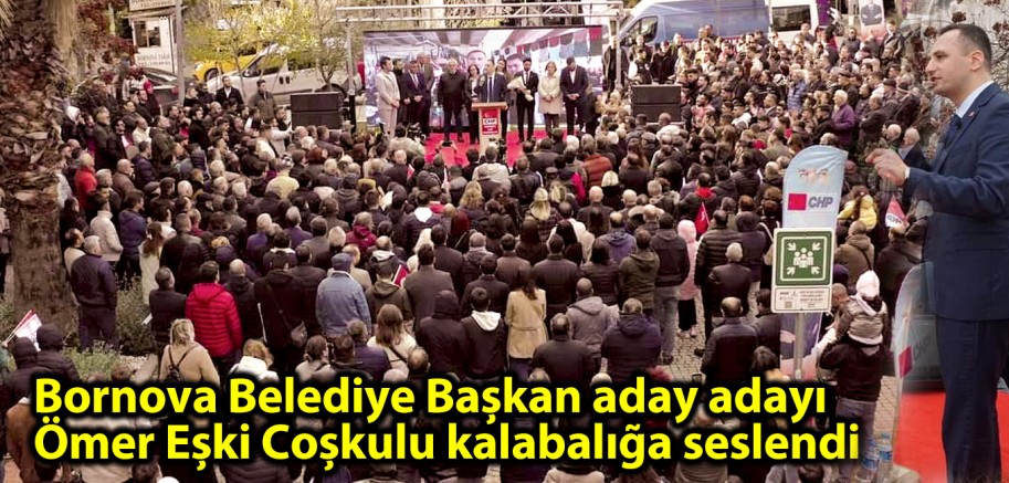 Bornova’nın tanınmış simalarından Ömer Eşki, 31 Mart 2024 yerel seçimlerinde Cumhuriyet Halk Partisi’nden belediye başkanı aday adaylığını Bornova halkının huzurunda açıkladı. CHP Bornova İlçe Başkanlığı önünde miting havasında gerçekleşen aday adaylığı açıklama toplantısında kendisini yalnız bırakmayan kalabalığa seslenen Eşki, kenti yönetmeye talip olduğunu söyleyerek, Daha yaşanılabilir bir Bornova için çok çalışacaklarına vurgu yaptı.