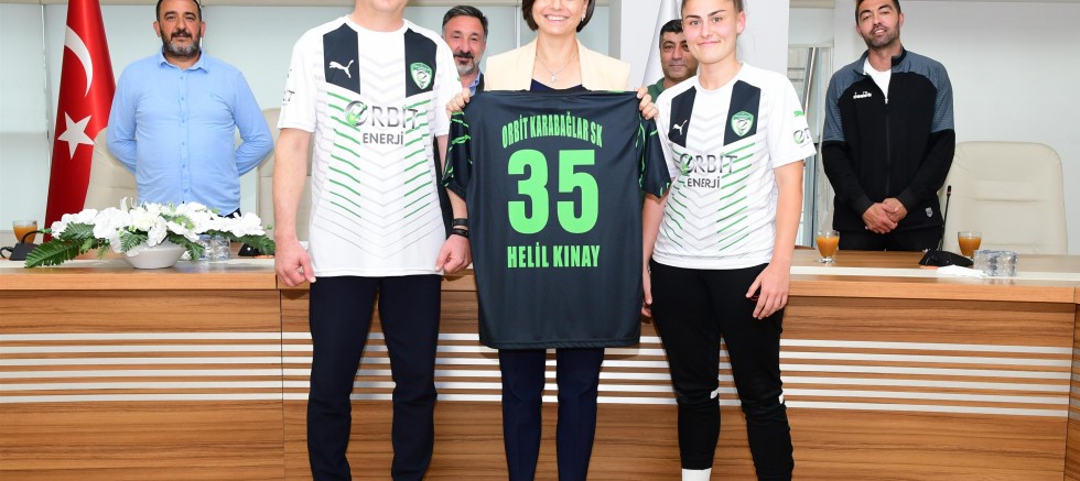 Keyifle geçen sohbetin ardından Orbit Karabağlarspor Kız Futbol Takımı, Başkan Kınay’a forma hediyesi verdi. Forma için takıma teşekkür eden Başkan Kınay, onların her zaman yanında olacağını belirterek birlikte hatıra fotoğrafı çektirdi.