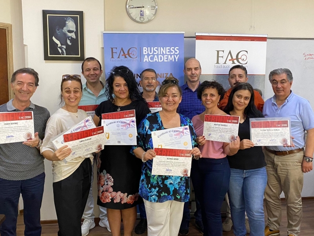 Eğitim sonunda katılımcılara; Uluslararsı geçerliği olan sertifikaları ve e-Devlet onaylı sertifikaları ile kurum sertifikaları Fraud Audit Corporation-FAC ortaklarından Sayın Elmas Üzüm, Eser Sevinç, İbrahim Atış ile kurumun İzmir İl Temsilcisi Hakan Ceylan tarafından takdim edildi.