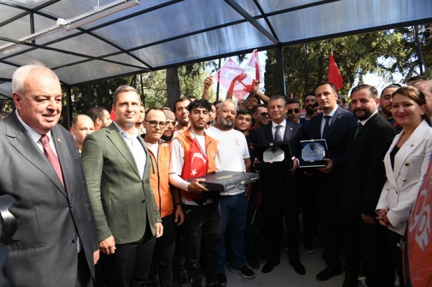 Genel Başkan Özel, Sarnıç Köyü’ndeki caminin temelinin atılmasının hemen ardından Çamdibi Atatürk Parkı’ndaki törene katılmak üzere harekete geçti. Özel, geçiş güzergahındaki Bornovalıları selamlayarak ilerlerken, Bornova Belediyesi’nin hizmete açtığı Motokurye Parkı’ndan yararlanan motokuryelerin sürpriziyle karşılaştı. Özel’in yolunu keserek sevgi gösterisinde bulunan motokuryeler hem Bornova Belediyesi’nin verdiği destek nedeniyle teşekkür etti hem de seslerinin duyurulmasını istedi.