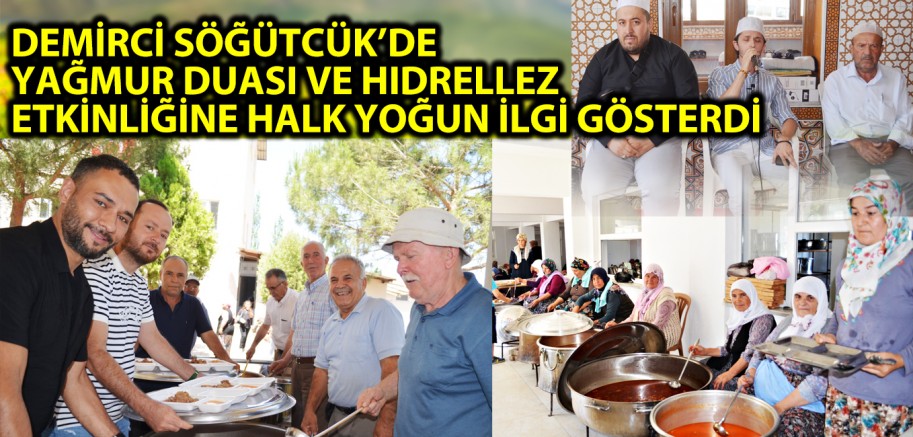 Manisa’nın Demirci ilçesine bağlı Söğütcük mahallesinde düzenlenen ‘Hıdrellez ve Yağmur Duası’na binlerce kişi katıldı. Bir gün öncesinden hazırlıklara başladıklarını söyleyen Söğütcük Mahallesi Muhtarı Mustafa Çiftçi, ”Hayır cemiyetimize uzaktan ve yakından teşrif eden misafirlerimize şükranlarımı sunuyorum” dedi.