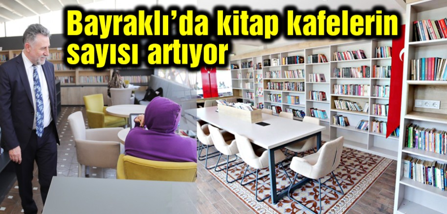 Bayraklı Belediyesi, bünyesindeki sosyal tesis ve kafeteryaları 'Kitap Kafe'lere dönüştürme projesinde sayıyı 6'ya çıkardı. İlk uygulamasını yaklaşık bir yıl önce Mansuroğlu Mahallesi'ndeki Değirmen Kafe'de hayata geçiren belediye, bu kapsamda 75'inci Yıl Mahallesi'nde bulunan Teras Kafe'de ve Cengizhan Mahallesi Ekrem Akurgal Parkı'ndaki sosyal tesiste de kitap kafeler oluşturdu. Bu kapsamda çalışmalarını hızlandıran ekipler, Körfez Mahallesi’ndeki Körfez Kafe’de ve Soğukkuyu Büyük Park’ın içinde bulunan sosyal tesiste çalışmalarını tamamlandı. Ayrıca Mansuroğlu Mahallesi’ndeki Mürdüm Kafe’nin de bir bölümü kitap kafeye dönüştürüldü. Çalışmalarında sona yaklaşılan kitap kafelerin kısa zamanda hizmete açılması planlanıyor. Kitap kafeleri kullanan vatandaşlara çay hizmeti ücretsiz veriliyor.