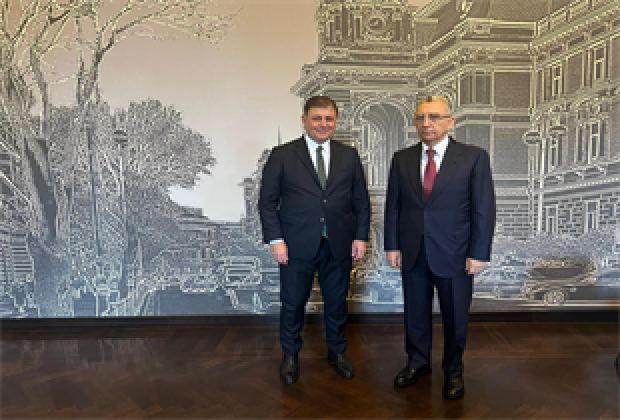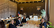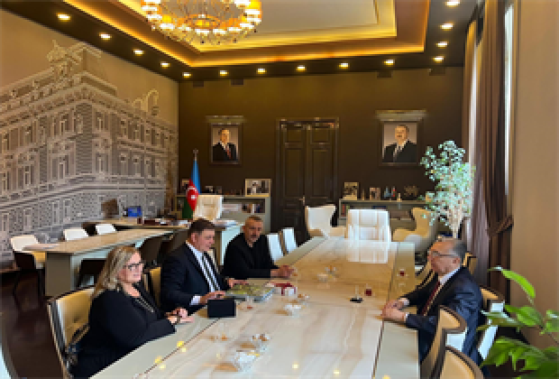 Başkan Tugay Bakü temasları kapsamında İzmir’in kardeş kenti Bakü’nün Belediye Başkanı Eldar Azizov ile bir araya geldi. İki başkan İzmir ve Bakü arasındaki ilişkileri daha da güçlendirmek ve ortak projeleri ilerletmek konusundaki kararlılıklarını bir kez daha vurguladı. Ziyaret kapsamında Bakü Türk Şehitliği’ni de ziyaret eden Tugay, iki ülke kardeşliğini simgeleyen Bakü’deki İzmir Parkı’na da gitti.