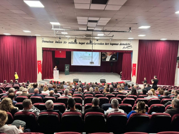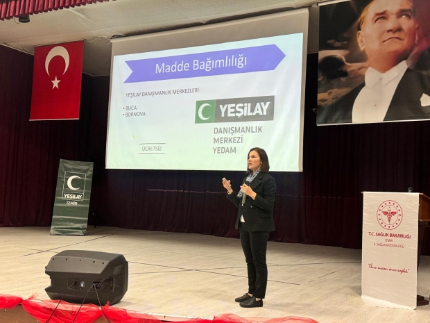 Urla Hakan Çeken Kültür Merkezi’nde düzenlenen 4. “Muhtarımla Birlikte Bağımlılıkla Mücadele” sempozyumu İzmir Valiliği, Yeşilay İzmir Şubesi ve İzmir İl Sağlık Müdürlüğü’nün bir araya gelmesiyle gerçekleştirildi. Alanında uzman hocalar, bağımlılığı her açıdan ele alan sunumlarını gerçekleştirirken, Emniyet Müdürlüğü hukuksal boyutu, İl Sağlık Müdürlüğü ve Yeşilay tedavi boyutu hakkında bilgilendirmelerde bulundu.