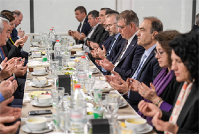 Birlik ve beraberliğin en üst seviyede olduğu ramazan ayı, İzmir Büyükşehir Belediye Meclisi’ni üyelerini de aynı sofrada buluşturdu. İzmir Büyükşehir Belediye Başkanı Dr. Cemil Tugay’ın ev sahipliğinde meclis toplantısının ardından düzenlenen iftar yemeğinde tüm partilerin grup başkan vekilleri ve meclis üyeleri oruçlarını açtı.