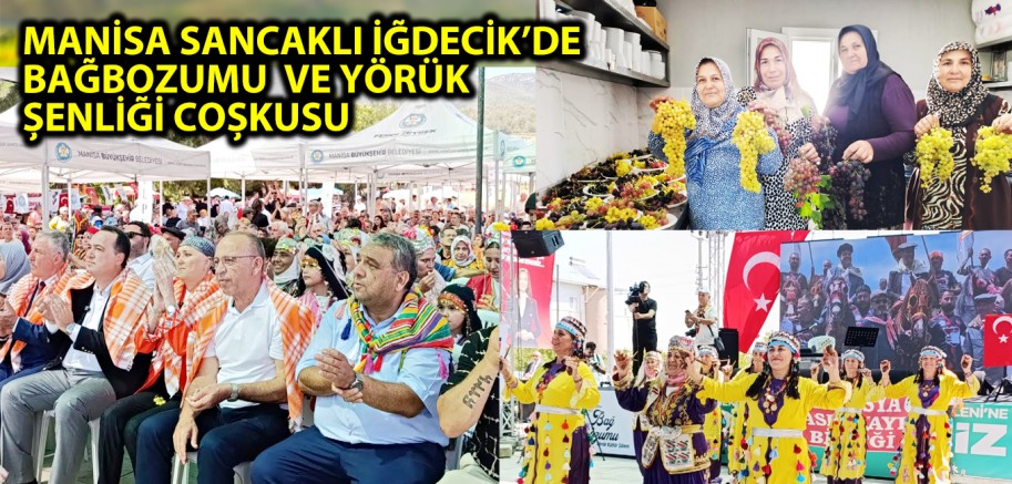 Manisa’nın Şehzadeler ilçesine bağlı Sancaklıiğdecik Mahallesi, 7’nci Geleneksel Bağ Bozumu ve Yörük Türkmen Kültür Şöleni’ne ev sahipliği yaptı.Manisa’nın Şehzadeler ilçesine bağlı Sancaklıiğdecik Mahallesi, 7’nci Geleneksel Bağ Bozumu ve Yörük Kültür Şöleni’ne ev sahipliği yaptı. Türkiye’nin dört bir yanından gelen Yörük Kültür Derneklerinin buluştuğu şölende; mehter takımı, kortej yürüyüşü, halk oyunları, davul-zurna gösterileri ve yöresel etkinlikler, atlar ve develerle renkli görüntülere sahne oldu.