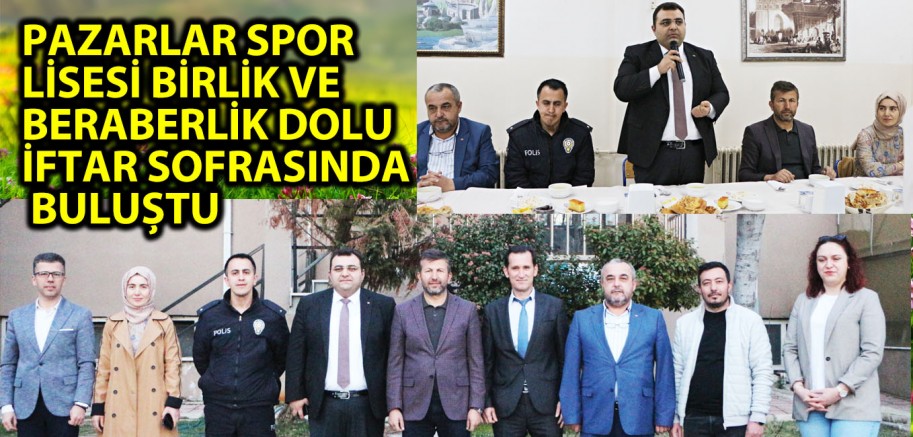 Pazarlar Spor Lisesi iftar yemeğine, Pazarlar Kaymakamı Sayın Alper Açıkgöz, Pazarlar Belediye Başkanı Bilal Demirci, Emniyet Amiri Mahmut Çevik, İlçe Milli Eğitim Müdür Vekili Zeynep Sena Can, AK Parti İlçe Başkanı Mehmet Ali Özdemir, Gençlik Spor İlçe Müdürü Harun Çakır, Pazarlar Müftüsü Yasin Sadettin Yıldız, müftülük çalışanları, Pazarlar İlkokulu Müdürü Mustafa Fatih Eren, emekli öğretmen ler, öğretmenler ve aileleri, öğrenciler, veliler, ve misafirler katıldı.